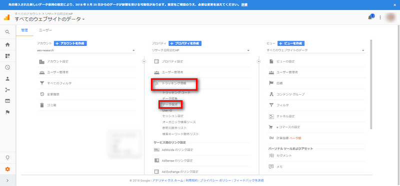 Google Analyticsのデータ保存設定